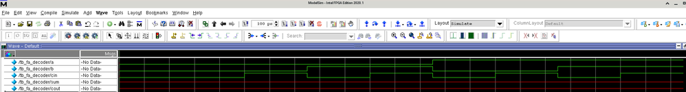 - ModelSim 20.1.1: The simulation runs successfully, producing an output. However, this behavior is incorrect as nested modules are not allowed in Verilog.