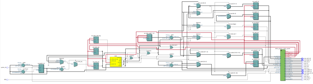 I have a simple design where a state machine writes synthetic data to DDR using the Avalon bus of the DDR3 controller and reads it back after some time, processes it, and writes new data to DDR.