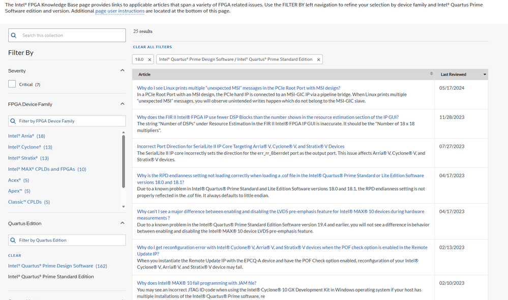 Known software issues are previous issues list that you found in the FPGA Knowledge Bases with the tag 18.0 Standard vserion