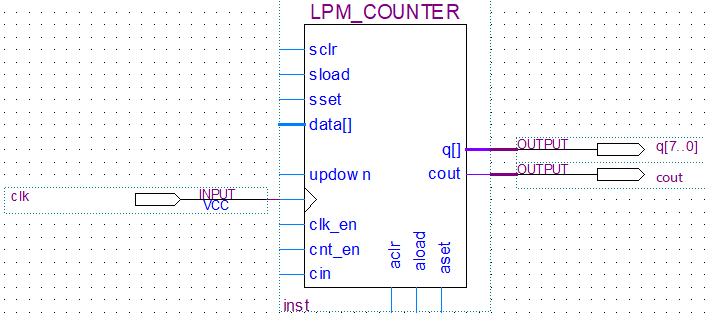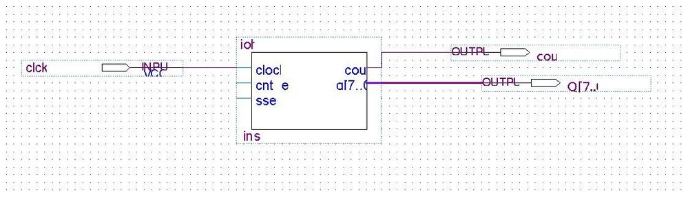 I made a counter using the lpm library and did not assign input for both cnt_en and sset pins.(first photo)