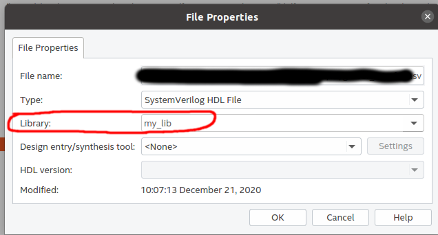 In VHDL the solution would be to add library my_lib; refer to my_lib at the instantiation but this isn't possible in SysV.