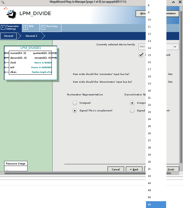 lpm_hint => "LPM_REMAINDERPOSITIVE=FALSE", when No has been selected