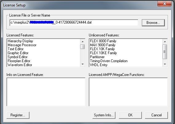 Requested and received new license to our Max+Plus (V10.2) the new license doesn't enable all the features (no graphic editor not support for MAX6000 etc.)