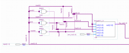 I trying to make a make a system takes in a 3 bit line and flips put to a specific bit, like two's complement. I am struggling to reconstruct my bit bus after manipulating my bits. Specificall...