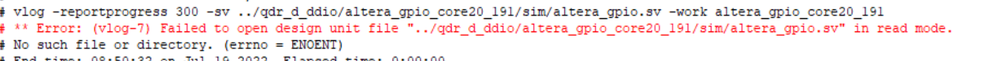 The directory: ../qdr_d_ddio/altera_gpio_core20_191/ was never created by the IP generator. The directory ../qdr_d_ddio/altera_gpio_core20_2000 was created.