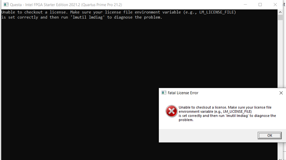 - Setup the LM_LICENSE_FILE location properly in Quartus License Setup