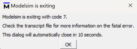 Hi there, Please check if the installation path of Modelsim and your user name (C:\User\) contains English only.
