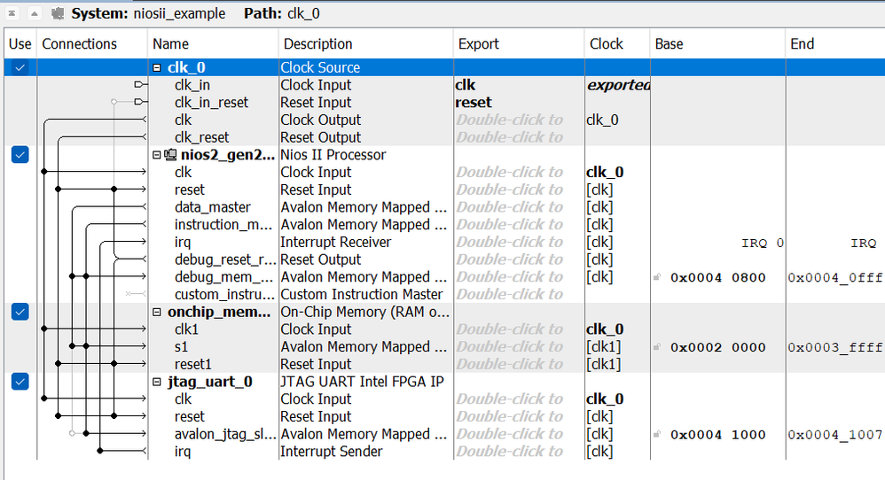 I'm following these steps: https://www.intel.com/content/dam/support/us/en/programmable/support-resources/fpga-wiki/asset02/nios-ii-hello-world-a10.pdf
