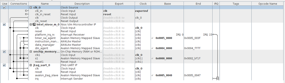 I am using the DE10-Lite Board with the Golden Top example Design and add a very basic Nios V to it.