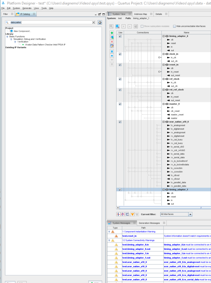 Fadi27New Contributor3 years agoNO data pattern generator IPHello, I am using Quartus Prime Pro 22.2 and there is no data pattern generator on IP catalog and Plateform design (Qsys). How can I add/upload this IP on IP catalog ? Thank you.