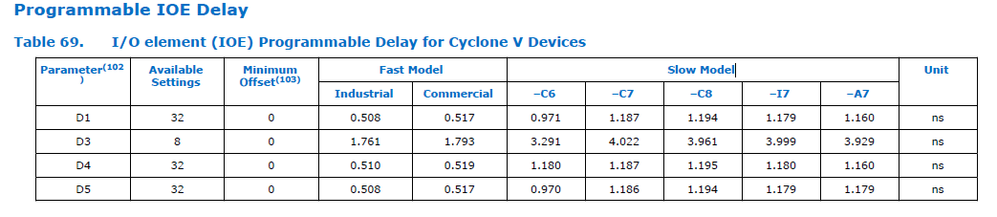2. Because the delay by IOE D1 needs to be added in the project qsf file, I try to set a general constrains that can be reused convenient also by other projects without changing the qsf file. I want to move this delay to the constrain file by the input delay, I increase the input delay based on the following table: