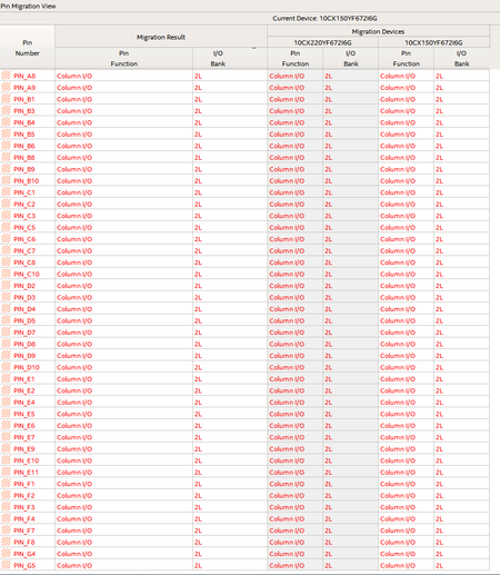 Hello, I am using Pin Planner to verify the pin compatibility between C10GX150 and C10GX220. I saw high lightened pins in bank 2L for unknown reason, please forward to attachment. Should I s...