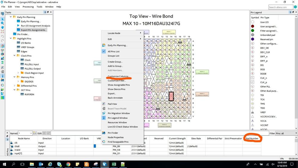 How can I get Pin report table that include information of Pin Function for each Pin Number