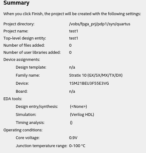 Then i used the New Project Wizard to create a empty project which selects as family Stratix10