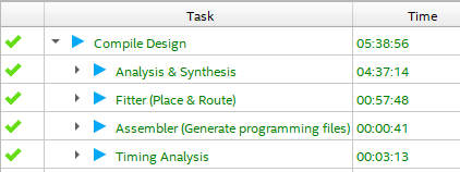 Most of the time is spent in Analysis&Synthesis: the i7 takes about 4h and the i9 2.5h here.