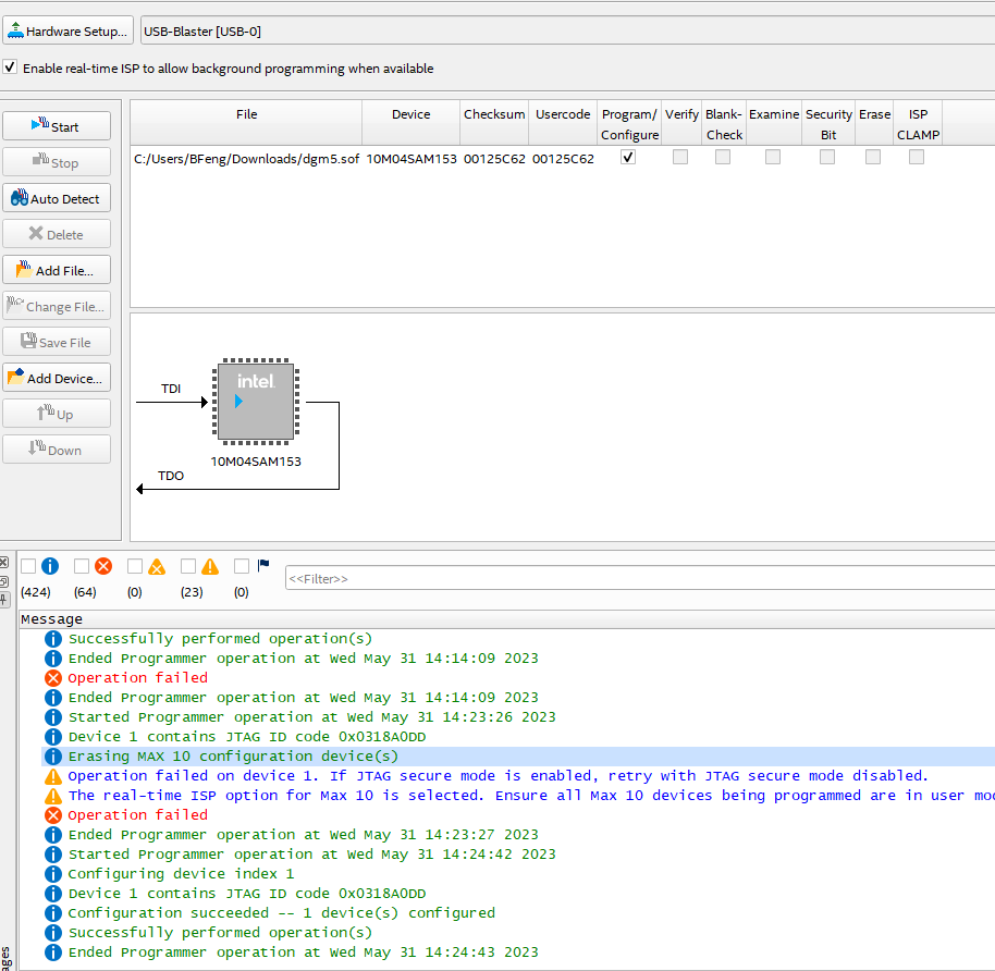 2 years agoPlease help: Operation Failed when programming FPGA using .pof file