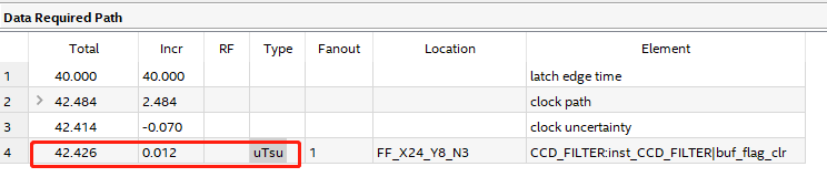 - Signal can arrive *later*. Therefore, the arrow will go *right* on waveform display, and you will see a *positive* entry in the required time calculation section of the timing report