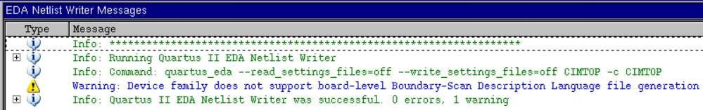 I have compiled the firmware in Quartus 9.0 which supports the FLEX10K device family and has a post-configuration BSDL writer capability. When I try to run the BSDL writer on the project, I get this message: