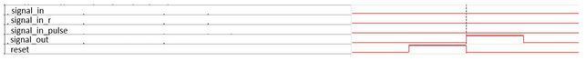 However, I've found the when reset being toggled, the output signal will also being toggled (one pulse) when input signal remains 'low'.
