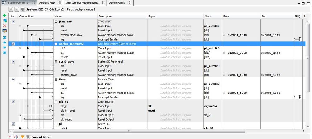 I am trying to run two NIOSII cores on an DE0-CV board. They are supposed to run two application and don't need to share any resource. I also need them to run with two different clock rates. This is my design: