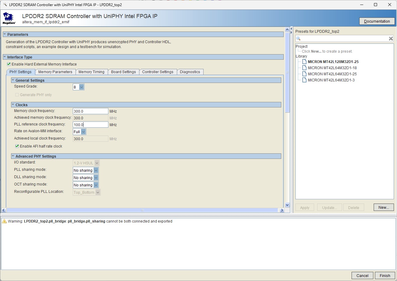 So I tried to generate LPDDR2 IP again with megawizerd of Quartus Prime standard 24.1.