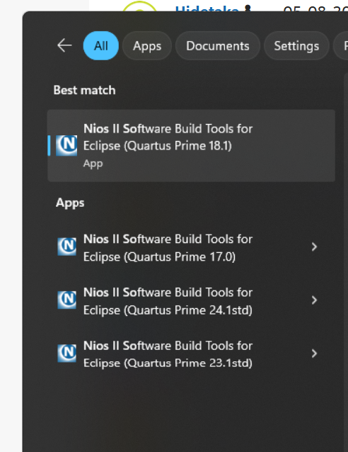 Only Quartus Prime standard 24.1.0.1077 and Quartus Pro 25.1.0.129 are installed on my PC.