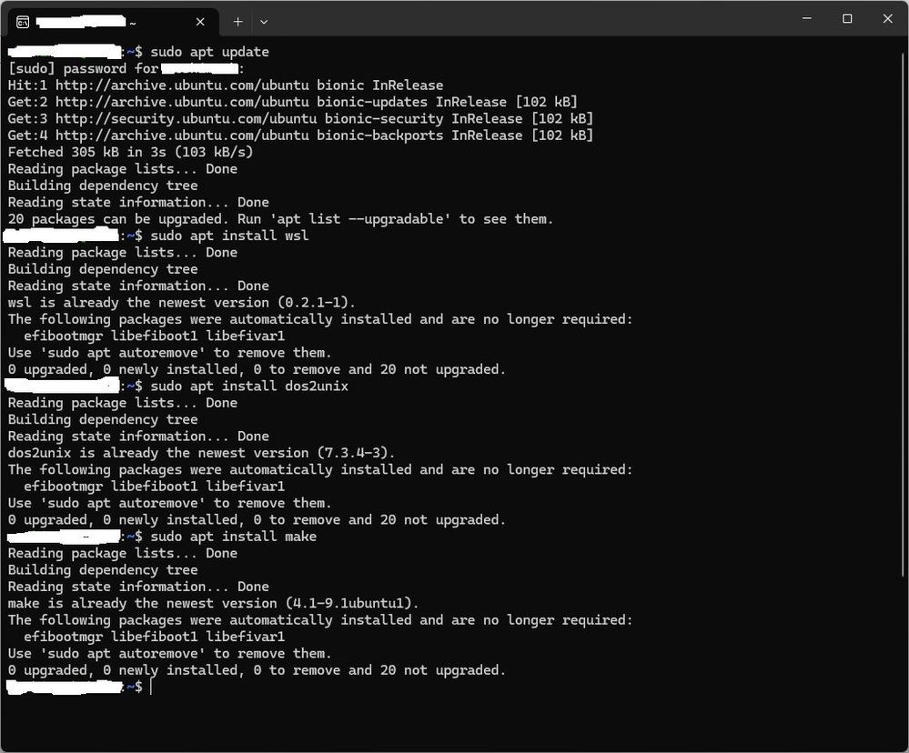 • Type wsl -u root to enter the Ubuntu terminal and issue the following commands