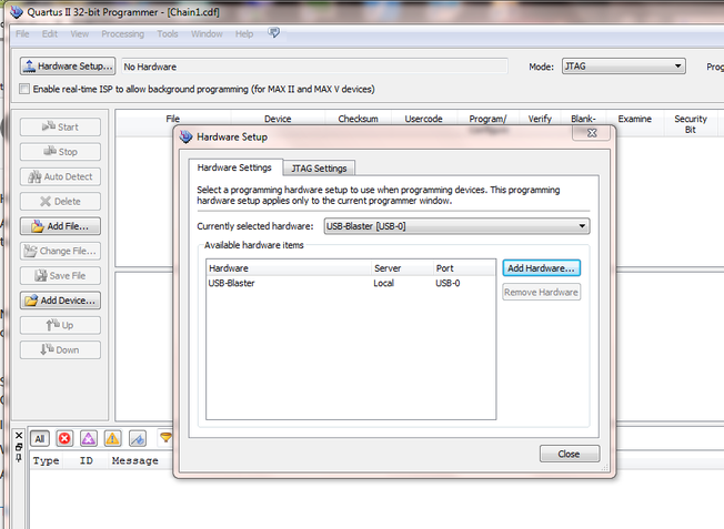 - Hardware Type: ByteblasterMV or Byteblaster II