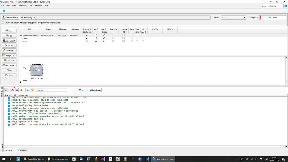 In one of my board I have 2 MAX PLD, but different family: one Max5 followed in the same daisy chain by a Max10, If I try to programm the two PLDs in the same operation this doesn't work with the last Quartus Prime Programmer.