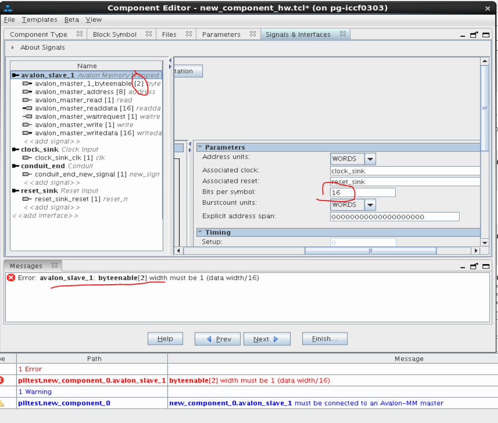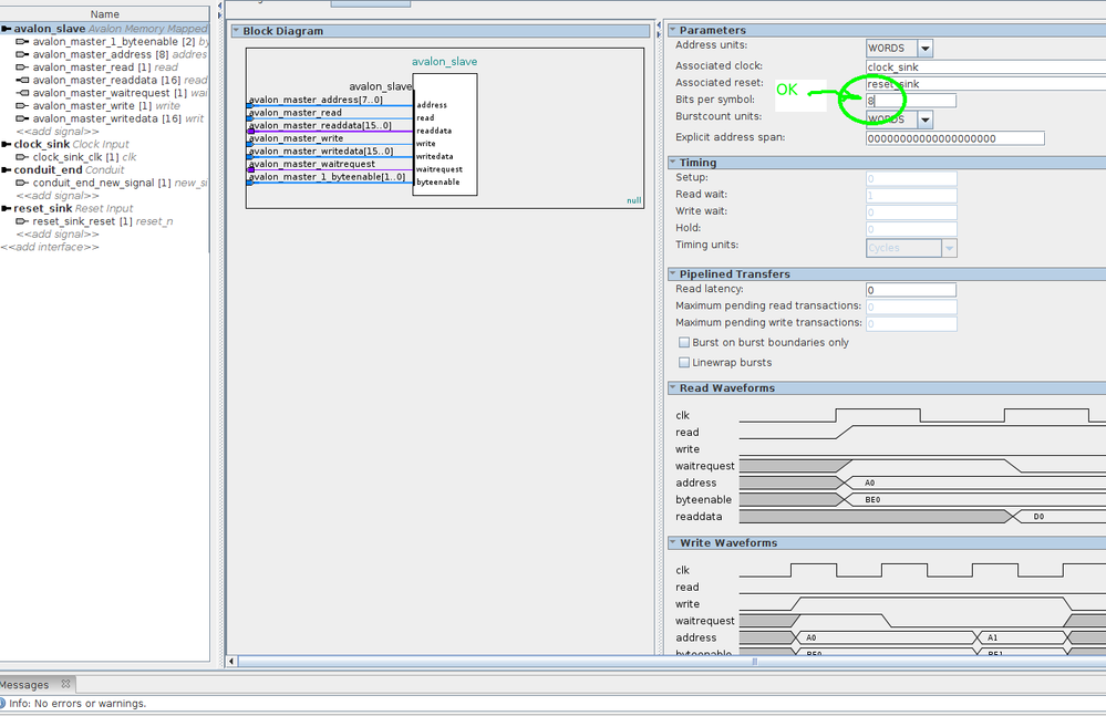 The software generates an error message when user enters a wrong value for byteenable under Avalon Slave, which alerts user about the wrong setting. I suppose this is the correct behavior where error message is generated for wrong setting.