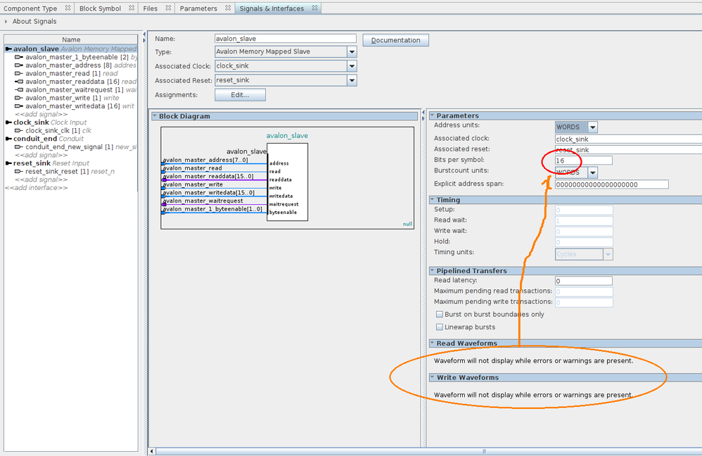Avalon bus, wrong Symbol size with byteenable size 2 generate wrong Core.