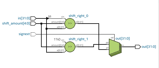 assign out = signext ? ($signed(in) >>> shift_amount) : ($signed(in) >> shift_amount);