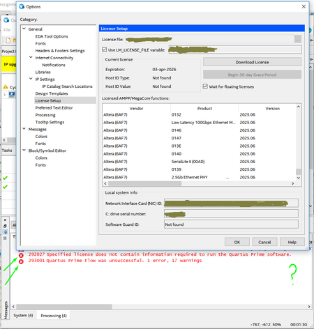 3. Configured the server again using this video https://www.youtube.com/watch?v=llLaWatUbe8 and this troubleshooter helps https://www.intel.com/content/www/us/en/programmable/support/support-resources/knowledge-base/ts-index/lic.html