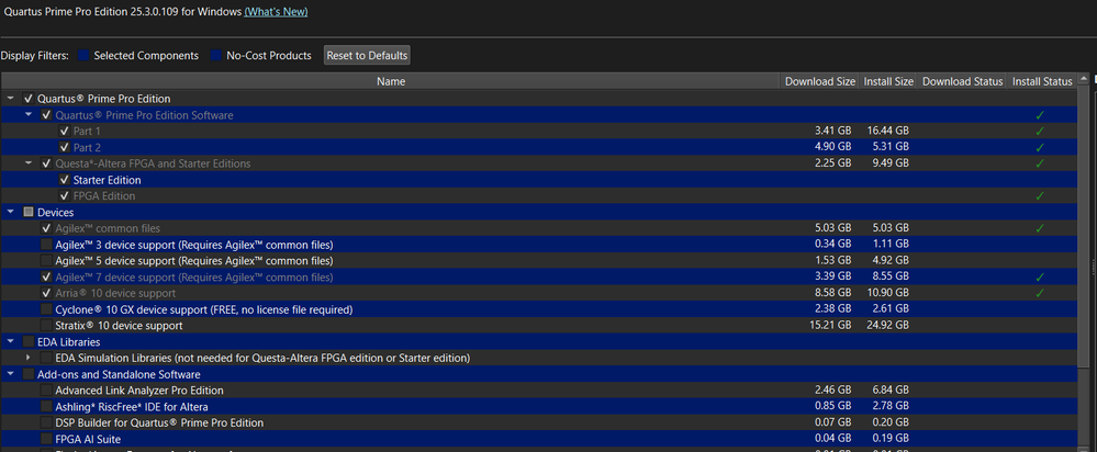 I just install the Quartus 25.3 with below selected and using a 30 day evaluation license, it still works fine from my side.