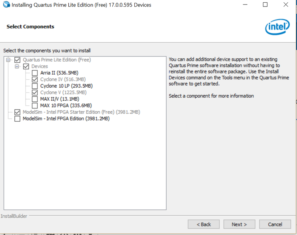 I installed quartus prime lite 17.0 and I installed two devices I plan to use Cyclone IV and V, as shown in the pics below.