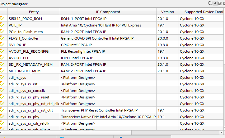 I rebuilt the project starting from the New Project Wizard under Q25.1. The compilation result is the same. Synthesis still generates the same warning messages with ID 17563 and 21610 as I mentioned in my last post.