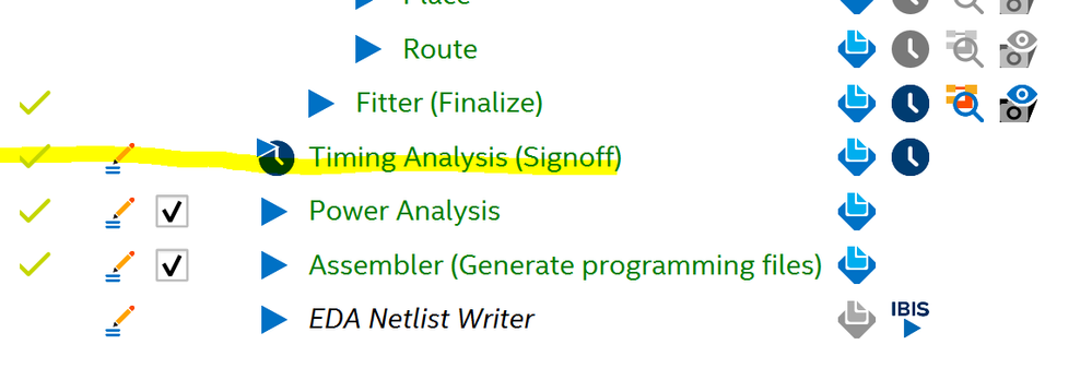 I suspect there might be errors in the generated .sdc files. The compilation flow shows a green tick before the Timing Analyzer. This indicates the design has passed the Timing Analyzer. I will compare the new sdc file with the old one and see if I can find anything.