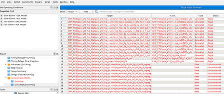 I suspect there might be errors in the generated .sdc files. The compilation flow shows a green tick before the Timing Analyzer. This indicates the design has passed the Timing Analyzer. I will compare the new sdc file with the old one and see if I can find anything.