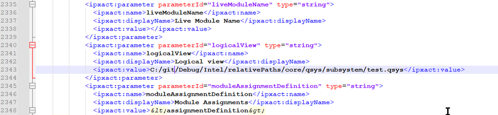 But, when the top .qsys file is in a different folder, e.g. within qsys/top and instantiates a file from qsys/subsystem/common Platform Designer always write the full absolute path in the .qsys file.
