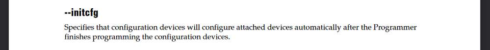 quartus_pgm --initcfg filename.cdfI expect the configuration devices to automatically configure when the programmer is finished, but it does not happen.