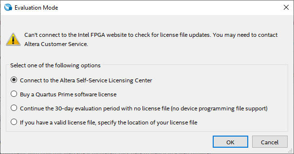 May I know, do you have a valid Quartus license. If yes, you could select the specify your license file location options