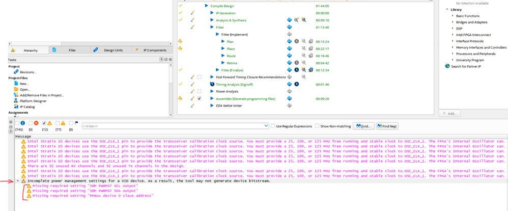 Critical Warning(19238): Incomplete power management settings for a VID device. As a result, the tool may not generate device bitstream.