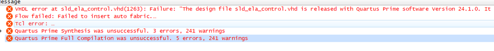 Error (22148): VHDL error at sld_ela_control.vhd(1263): Failure: "The design file sld_ela_control.vhd is released with Q