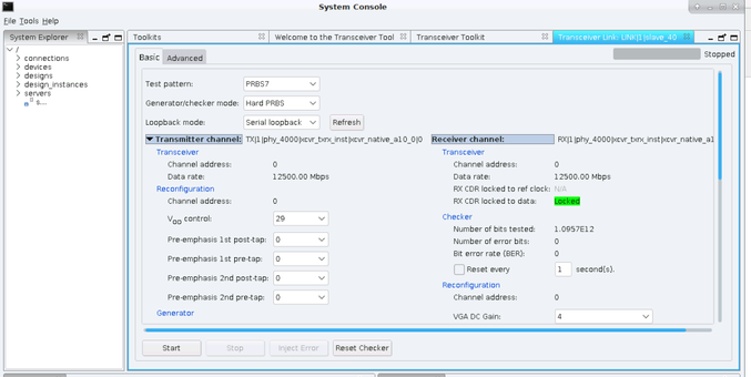 I am trying to send the data from a counter to Native PHY IP and receiving back using the FMC Loopback Card.