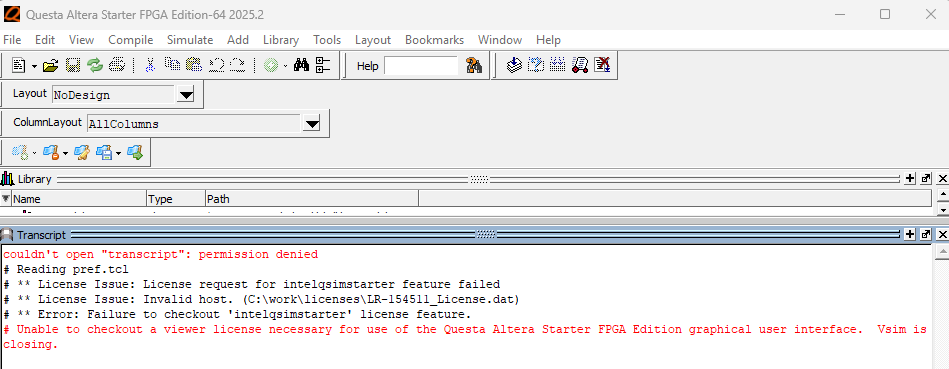So the question is, how should I proceed to make it work for Questa Altera Starter FPGA Edition-64 2025.2?