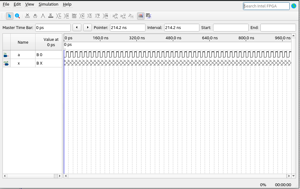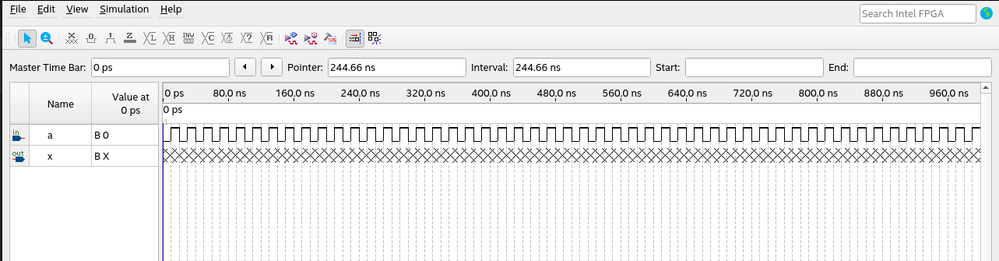 Simulation normally starts and new window appears, only problem is that in this window output still have an X state: