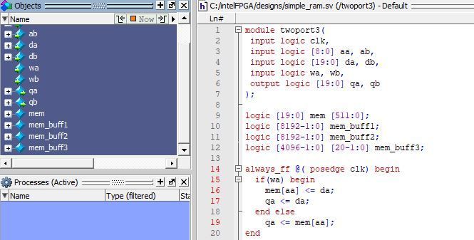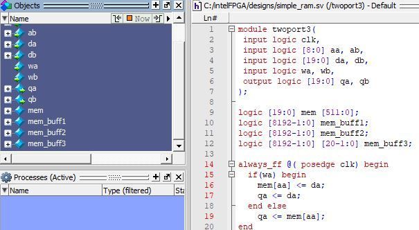 logic [4000-1:0][2-1:0] ram_buffer2 ;The problem is that there's no ram_buffer1 variable in objects list pallete in saved WLF file. I can't add to waveform both manually and through command
