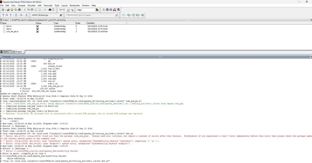 Hi , I am trying to compile and run simulation in Questasim , using uvm libraries and uvm packages. But i am getting error that include files not defined , although these uvm files are installed in...