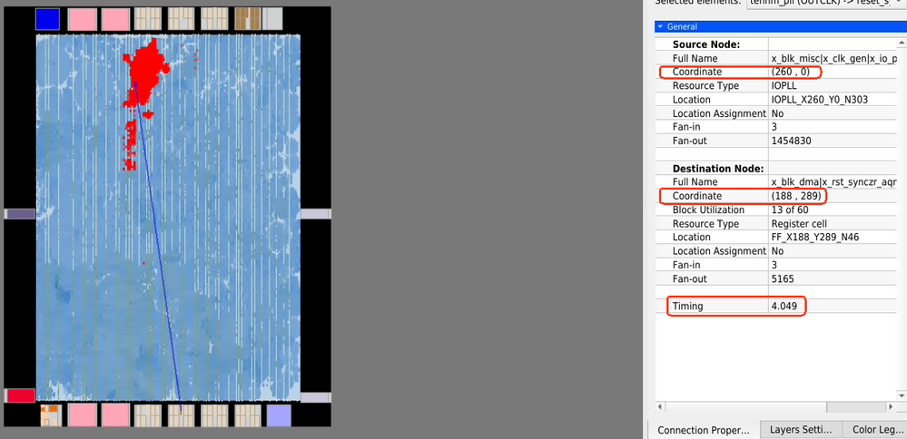 for one timing path, the start point is reset_sync flop2, the end point is aclr port of one flop in the module B. from the following figure 1, I find the distance start point and end point is not far apart but the routing delay is nearly 4.386ns. and How I fix the timing? Doesn't the reset route go through global network?