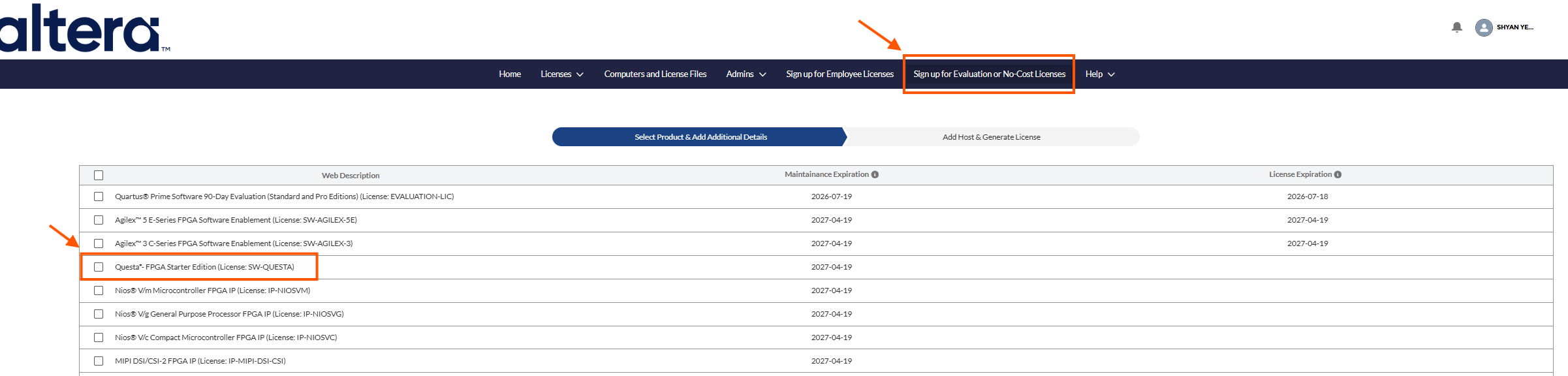 I would like to request a Questa Intel FPGA Starter Edition license for my Windows 11 environment.